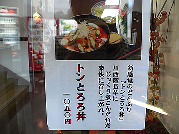 | とんとろろ丼の広告 | とんとろろ丼。1050円です。ボリュームたっぷりのサラダがついてきます。 | |