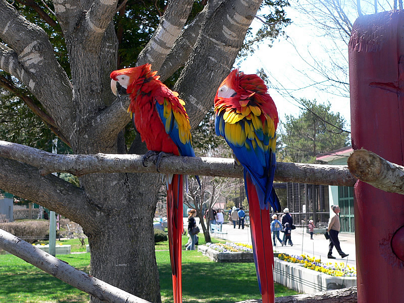 | 新しくなった、どうぶつえんマップ。 | オウム。檻のないところに止まっています。 |