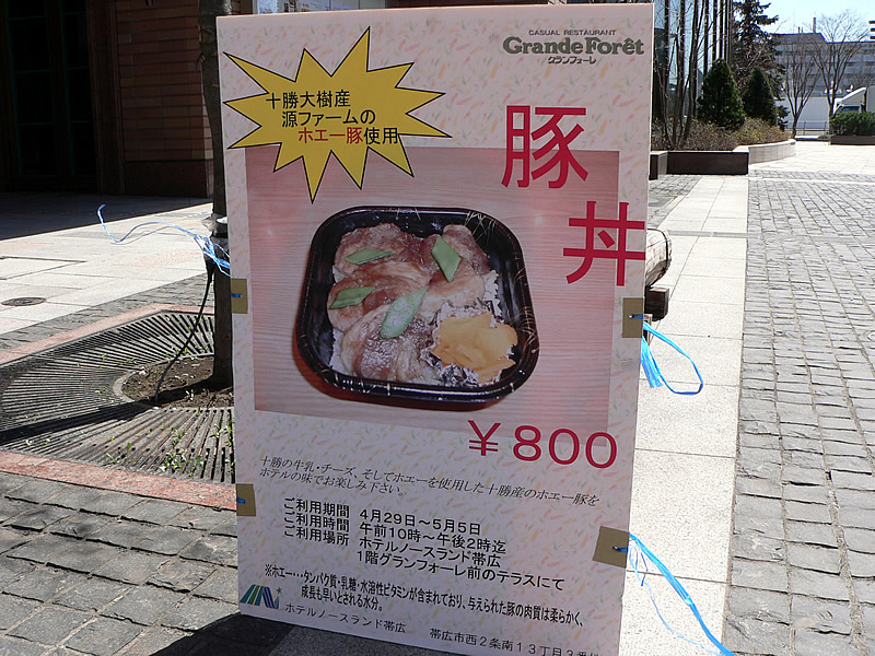 | 帯広駅南口を出てすぐのホテルノースランド帯広 | 1Fテラスで豚丼が期間限定販売されています。 | |