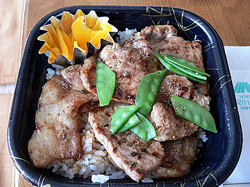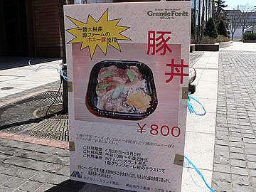 | R帯広駅に隣接しているホテルノースランド帯広では5月5日までホテル前で豚丼を販売しています。その場で焼いてくれますのでアツアツです。しかも大樹産源ファームのホエー豚使用です。
