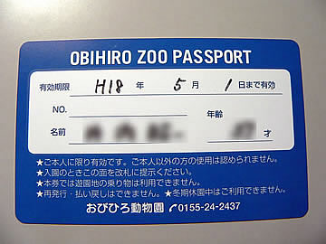 | 専用用紙に記入してパスポートを発行してもらいます。 | これで1年間動物園に公園に行く気分でいつでも入れます。 900円は安い。通常の二回分で1年間OK。 |