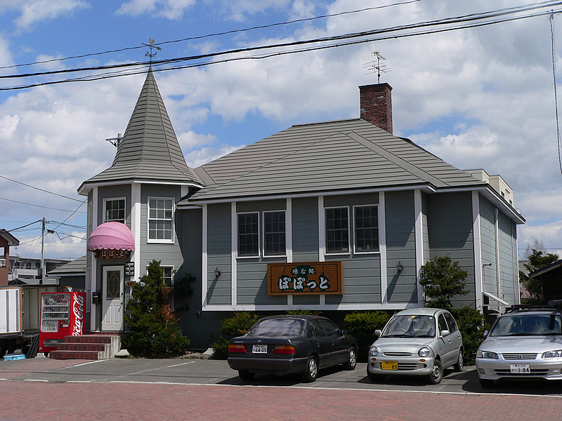 | 帯広市緑ケ丘商店街にある「味な処ぽぽっと」 | 手前が駐車場。 | |