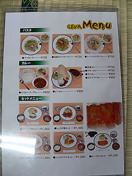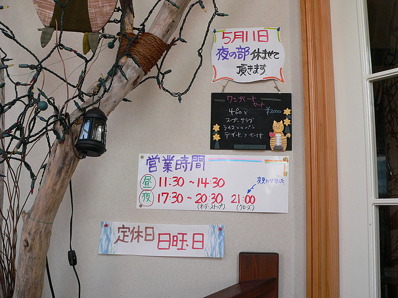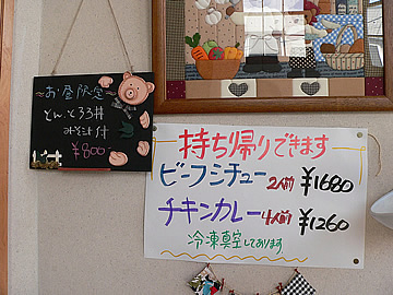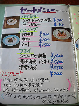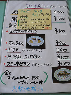 | 入り口を入ると階段があり、2Fが店舗です。 | メニューです。 | |