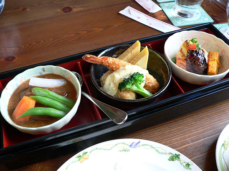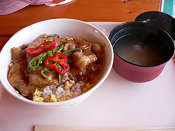 | ここのとんとろろ丼もおいしいです。 | ご飯の上に炒めた野菜が挟んであります。ここのお店らしく洋風にアレンジされています。 | |