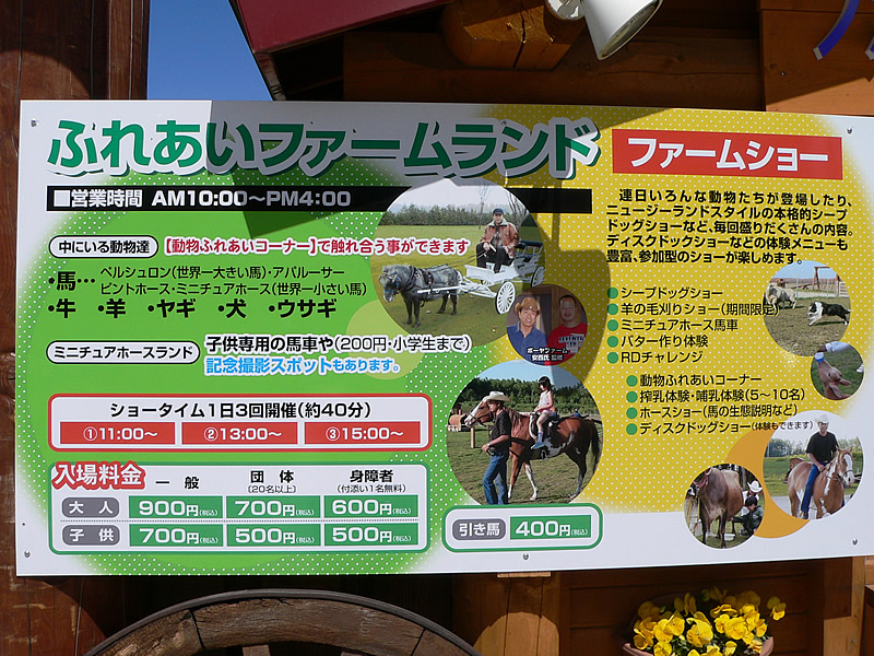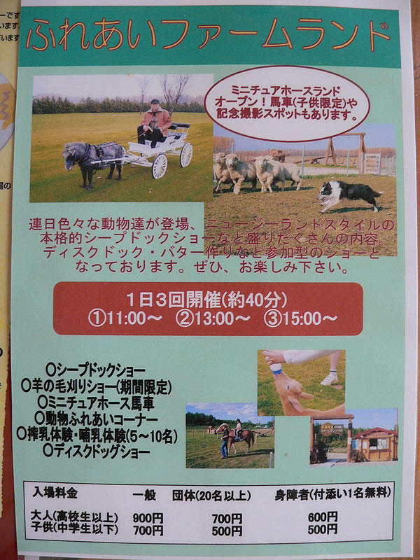 | ファーマーズハウスと反対側に出来た「ふれあいファームランド」 | 入場料大人900円。 | |
