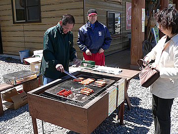 | 源ファームのホエー豚を使用で800円 | その場で炭焼きしてくれます。 | |