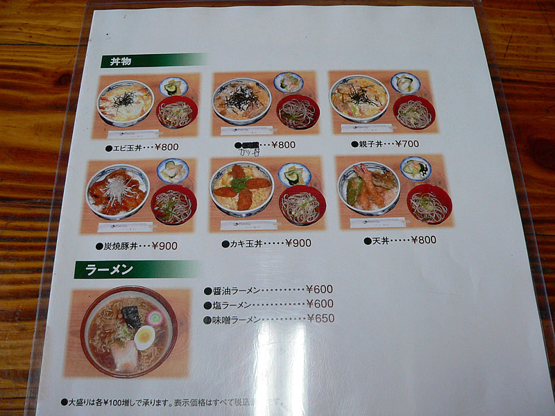 メニューです。炭焼豚丼は900円。洋食も丼物もラーメンもあります。