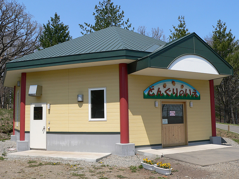 | ミニチュアホース。本当に小さくて腰くらいの高さしかないのですが、近づいてくると迫力あります。 | 隣にある昨年出来た「どんぐりのいえ」。小鳥やリス達がいます。 |