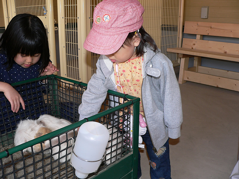 | うさぎとモルモットのいるところ。小さい子供達に大人気。 | モルモット。とってもかわいい。 |