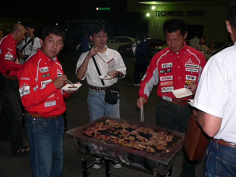 | 帯広三菱自動車販売音更店で開かれた「エントラントミーティング」。ラリー北海道に参加するチーム、メーカ、そして応援者が参加。十勝の美味しい食べ物やジンギスカンを食べながら交流を深めました。