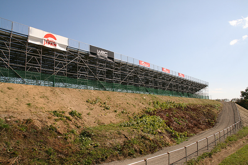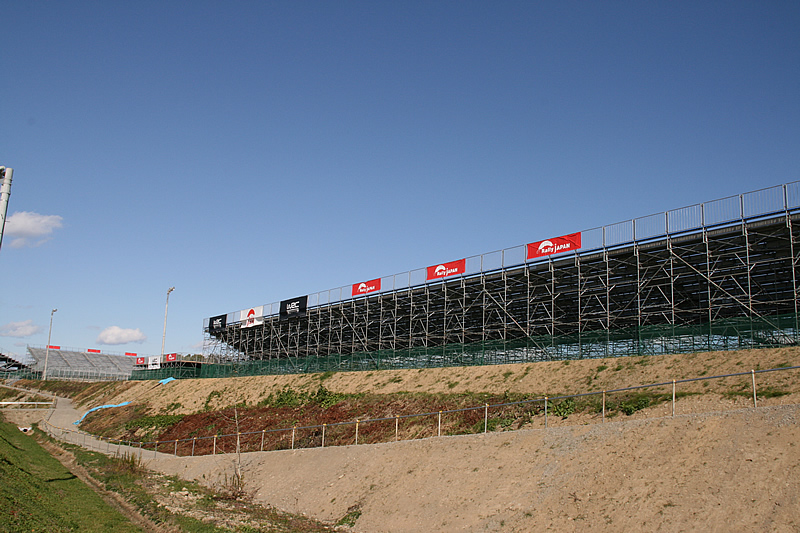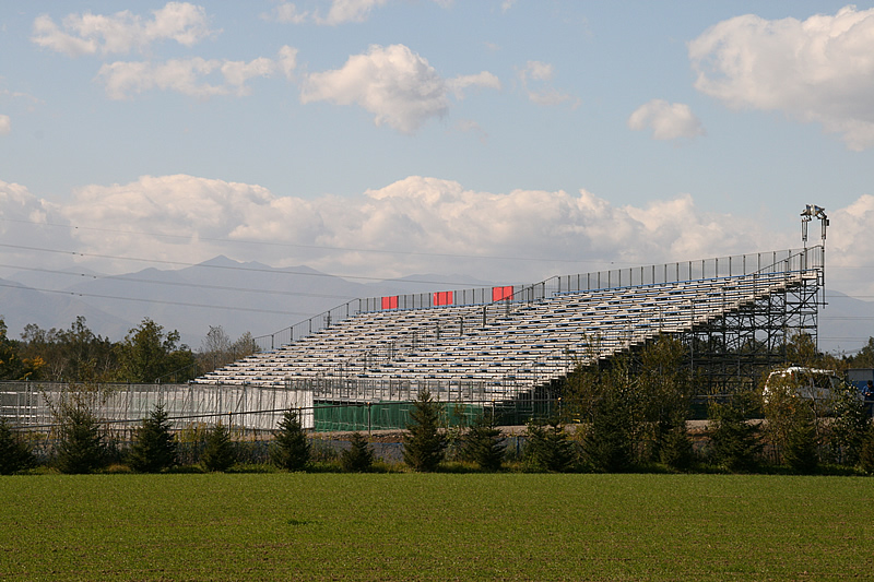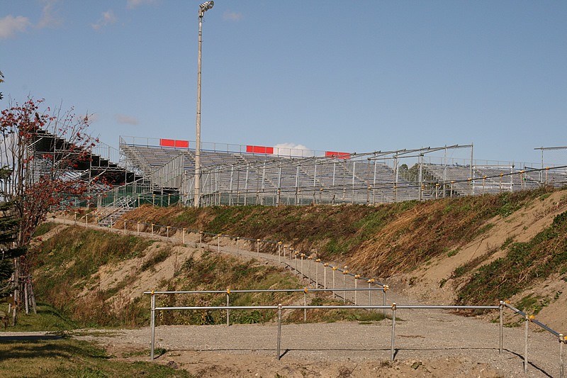 各スタンド席は完成したようです。誘導の歩道も手すりも付いて何時でも使用可能の状態。