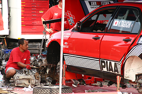 田口選手のマシンはエンジンを外されていました。